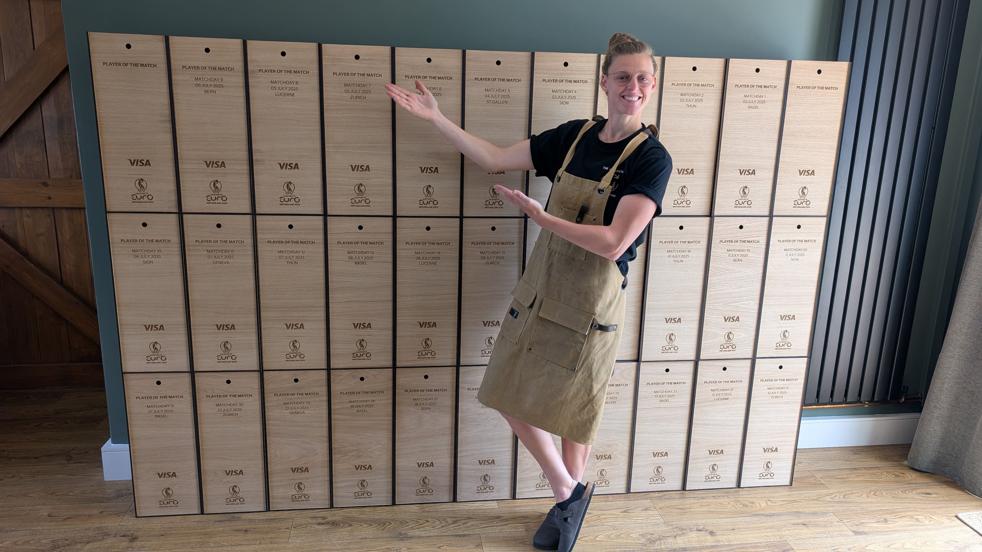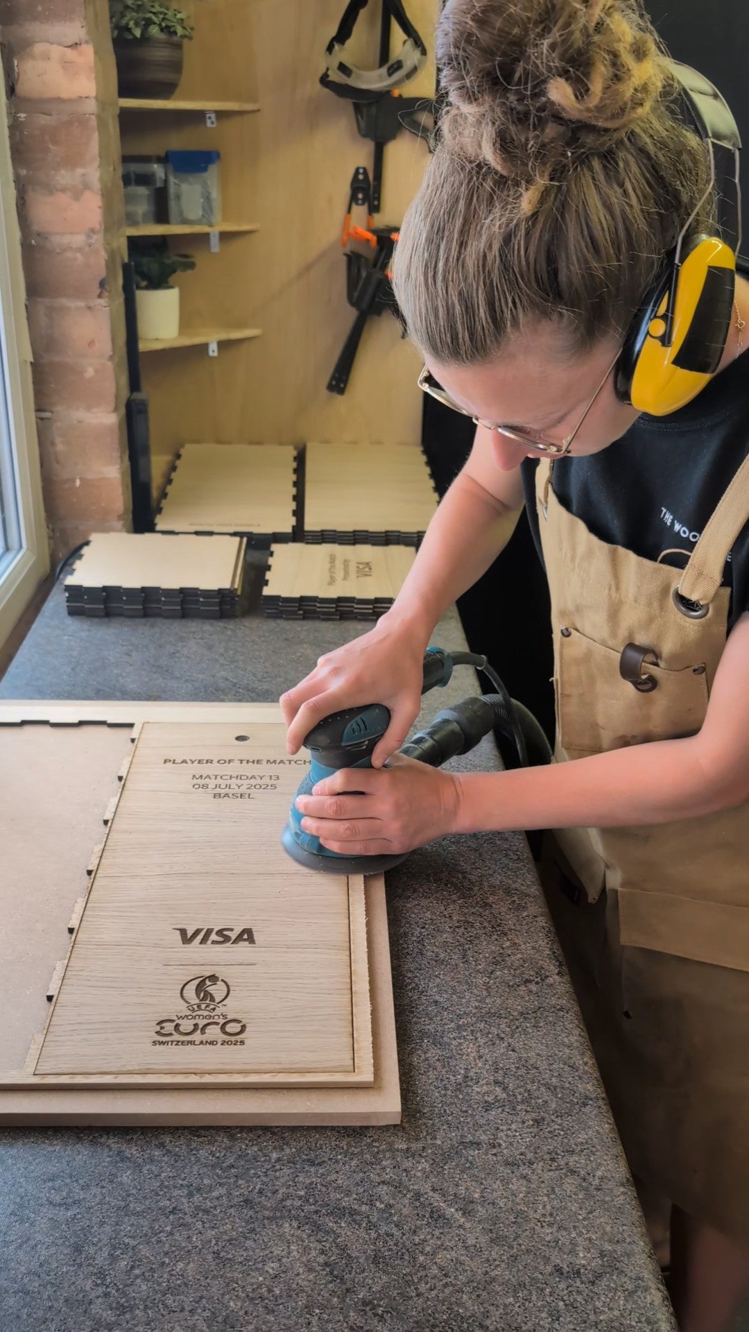 I had the amazing opportunity to partner with Visa for the UEFA Women’s Euro in Switzerland, creating 31 custom trophy boxes for the Player of the Match awards. Each standout player from every game received a trophy, safely housed in its own box to take home. It was a truly rewarding way to celebrate incredible performances—and a subtle reminder that even small, thoughtful details can make these moments feel extra special.