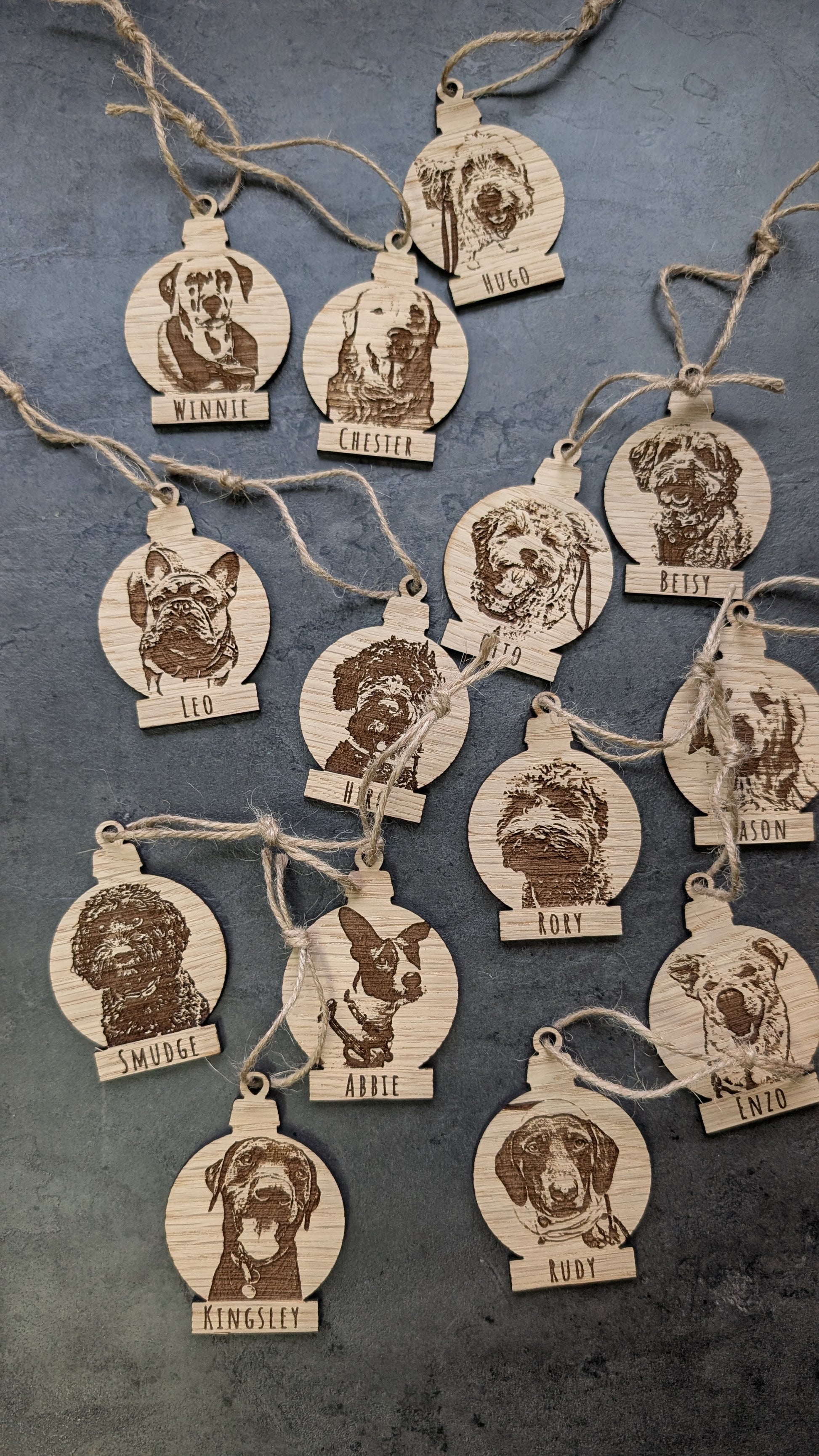 Personalised Wooden Christmas Bauble with picture - Custom Engraved Oak Ornament for Festive Tree Décor & Unique Holiday Gifts